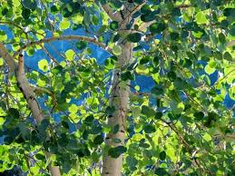 pale, delicate, unfurling from a bare aspen like tiny scrolls.